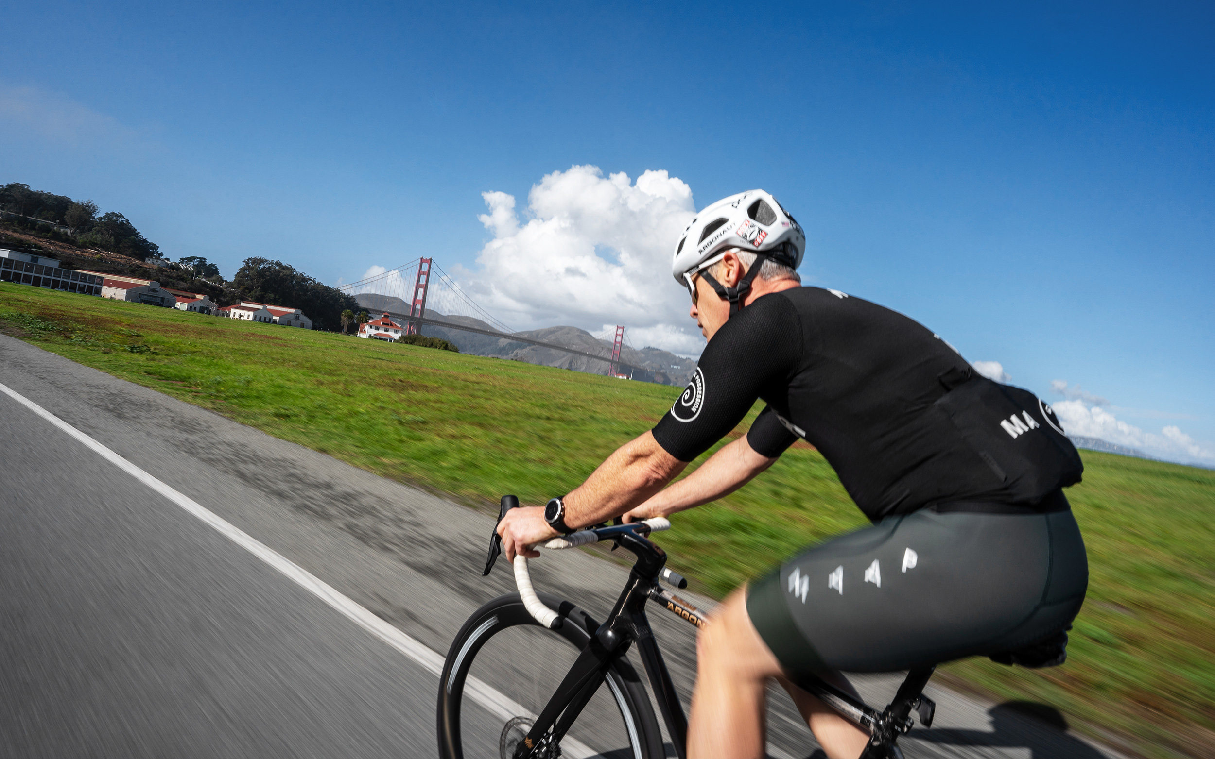 The ride itself was a symphony of effort. From the Golden Gate Bridge through Sausalito to Marin Service Course, we hit a smooth 20 miles in just over an hour before meeting Factory Racer Cassius Anderson at MSC for the climbs ahead. Mount Tam proved its reputation: long, winding, tree-covered roads that demanded both legs and focus. The reward was in the descents: fast, flowing, and thrilling on our RM3s, letting us slice through corners with precision as the cool coastal wind tugged at our jerseys.