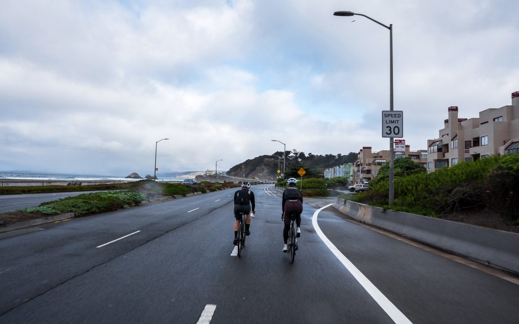 The route threaded through the Legion of Honor Art Museum — a subtle reminder that beauty isn’t always in motion — before descending toward the coast, where we snaked along the closed highway for a few miles. Golden Gate Park and the JFK promenade offered a playful urban contrast, the kind of streets that reward attentiveness with secret vistas, small moments that only a bike can reveal. By the time we rolled into PAS Normal Studios’ Haight-Ashbury shop, the day had already delivered its narrative: a seamless blend of city grit, coastal grandeur, and that pure cycling joy that only comes when the equipment works as flawlessly as the riders.