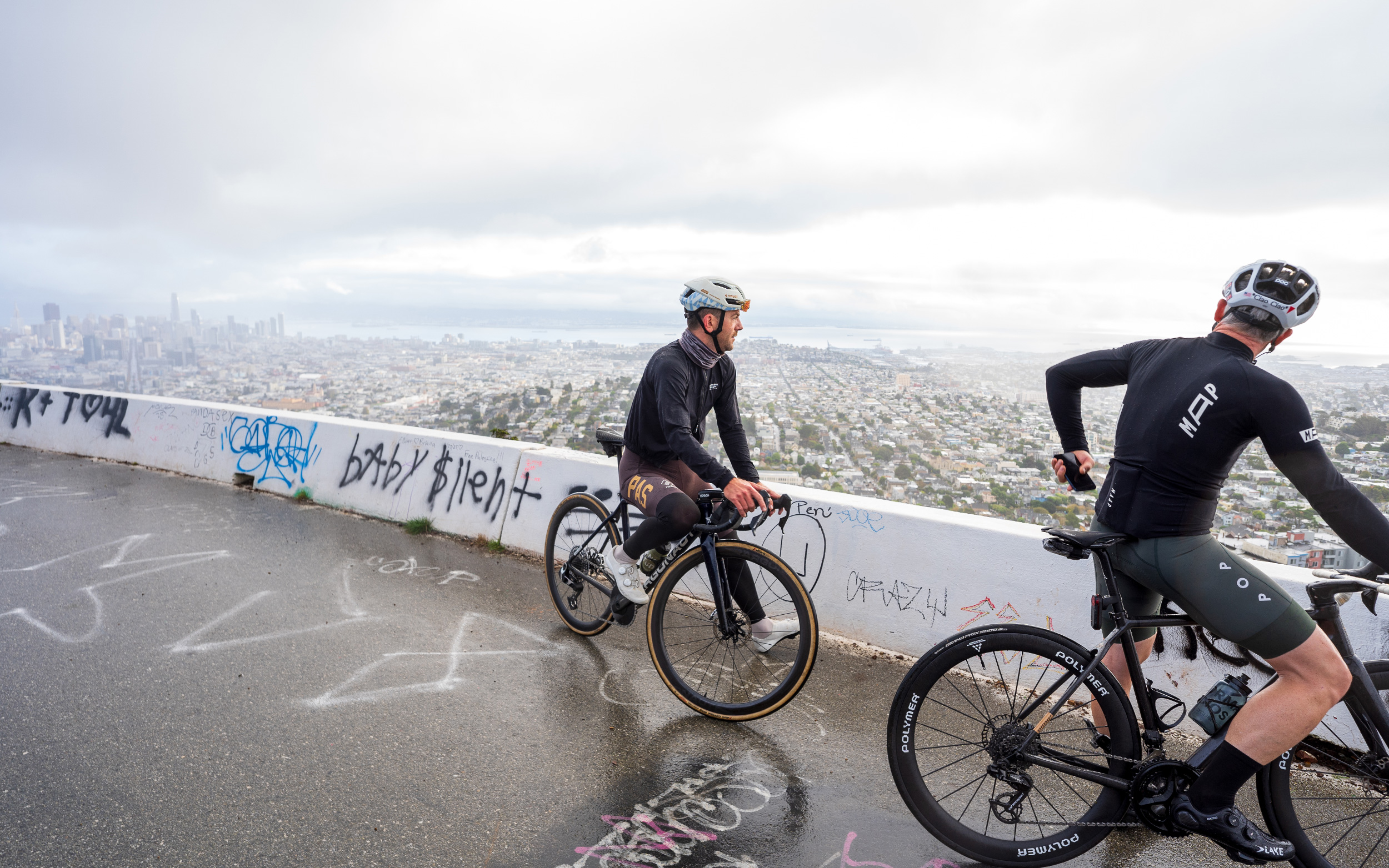 By Sunday, we were ready for a slower, reflective cadence — the kind of ride that rewards legs already full of effort but hungering for one last flourish. Matt guided us on a San Francisco-style Salida, reminiscent of our rides in Girona, where the city itself becomes both playground and partner. Starting from the hotel, we climbed toward the clouds for a lap up to Twin Peaks. The gradient put just enough hurt into our legs to shake out soreness, but the views made it worth every pedal stroke. Descending toward the ocean, the roads slick with light rain, each turn was a reminder of why we ride: exhilaration, beauty, and a shared connection to the streets under our wheels.